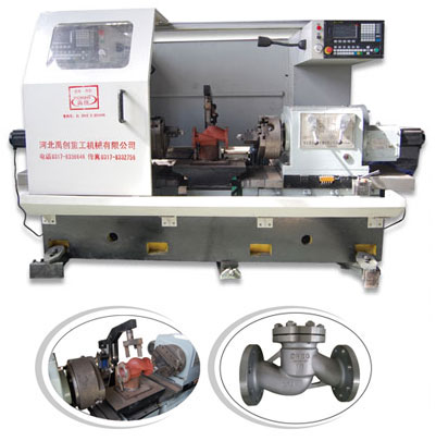 硬密封閘閥機床可一次性完成閥門密封面、外圓、端面、水線、內孔、倒角、挑絲等所有工序,可以做到一次裝卡,同時完成閥門三面的所
